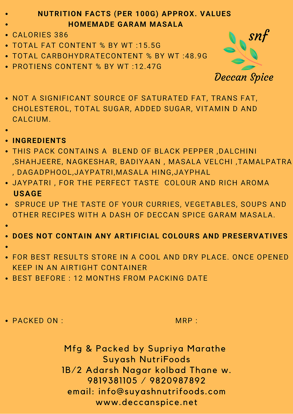 " Deccan Spice " a name that stands for high quality, wholesome homemade foods . The freshest ingredients chosen personally by our team make our food products delicious and highly nutritious The entire process of selection of ingredients to the packaging of final products is overlooked personally by us and hygiene maintained through every step.